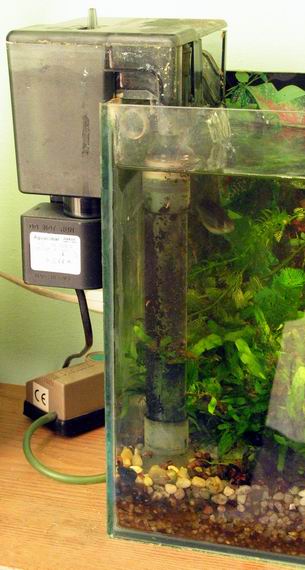 Jest to filtr kaskadowy AQUA CLEAR MINI. Mniejszej kaskady chyba już nie znajdziesz. Wygląda na duży bo jest doczepiony do małego akwarium 20 litrów(19x27x41 cm). Hoduję w nim rośliny i ślimaki świderki.